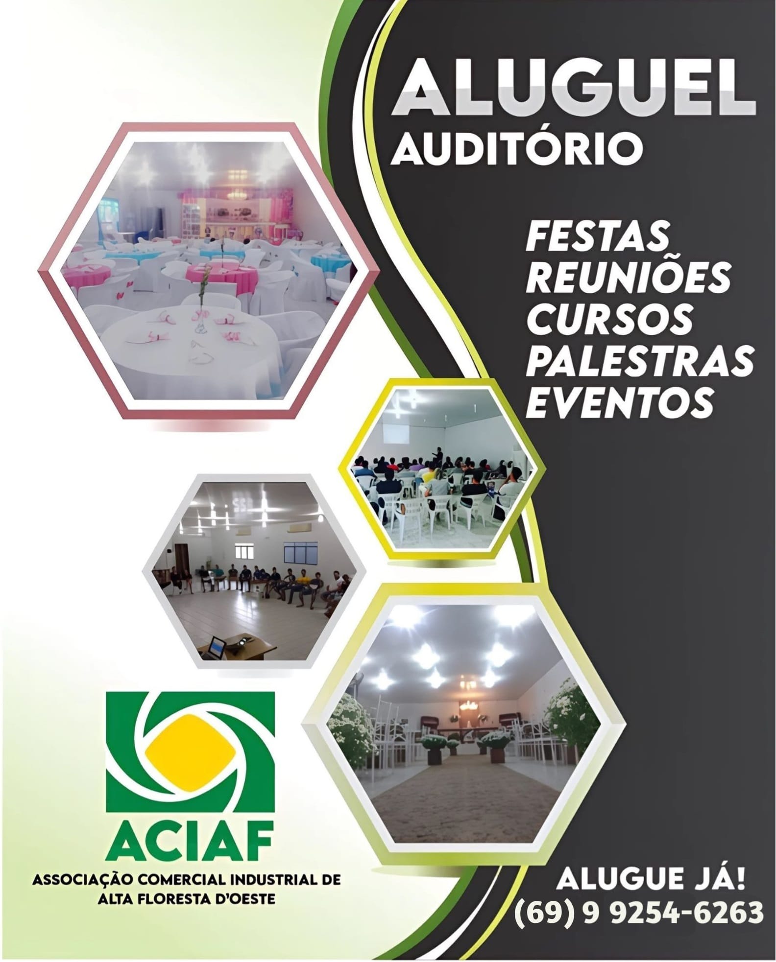 ACIAF oferece para locação um espaço climatizado, localizado na Rua Ceará, nº 3861, Centro Comercial de Alta Floresta d’Oeste – RO.